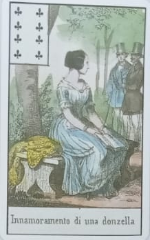 Ca de obicei, alături de Pică, această carte capătă și o valoare izbitor negativă, vorbind despre trădări, comploturi ascunse sau mașinațiuni necinstite. Alături de Caro, se descoperă secrete teribile despre partenerul tău. Alături de Treflă, criza va fi depășită în timp. Alături de Cui, relația se va relua în curând în cel mai bun mod.
