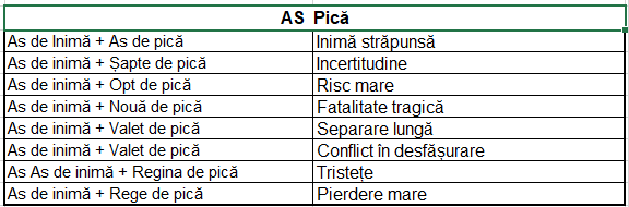 S-a menționat că asocierea mai multor cărți poate fi foarte utilă în timpul citirii pentru a descoperi alte semnificații divinatorii. Iată o listă, neapărat incompletă.